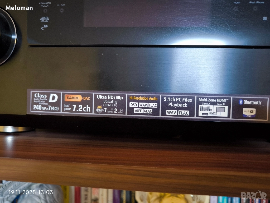 Ресивъра работи е в добро визуално състояние, почти като нов. Доста мощен и с приятен звук. Използван е от мен доста години и мога да кажа, че винаги съм бил много доволен от него. Но се налага да се разделя с него и с някой от колоните с които до сега слушах музика и филми. Работи безпроблемно и е едно много добро и мощно решение за домашен съраунд. Дистанционното е оригинално и е доста удобно и лесно за работа. Ако някой ги хареса заедно с Колоните и ги вземе при мен цената би била 1300 лв.