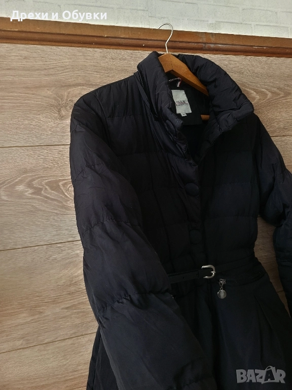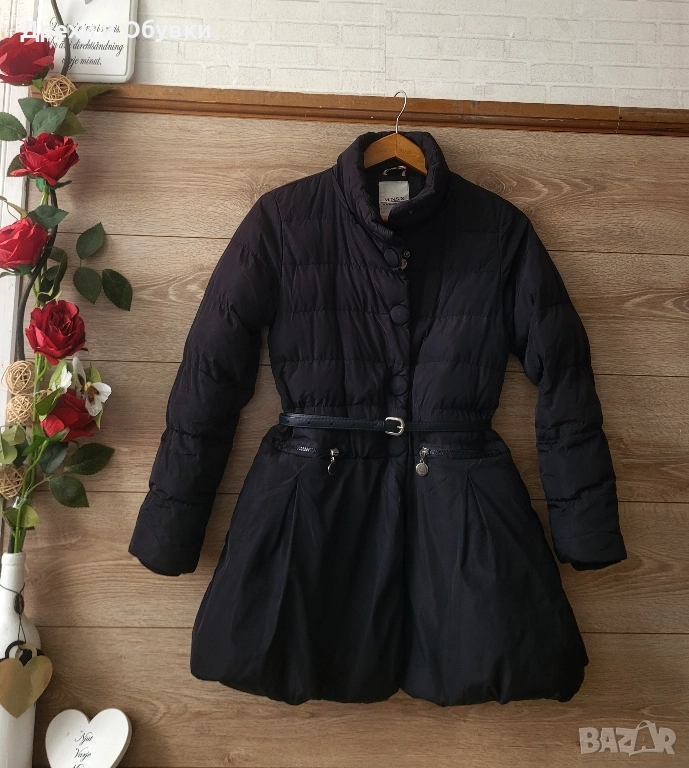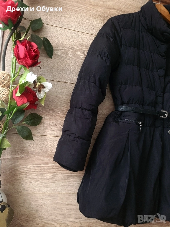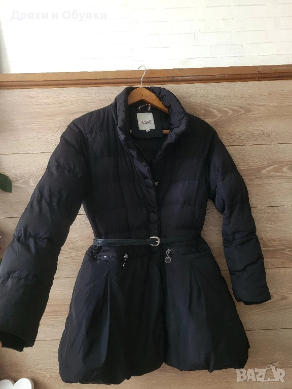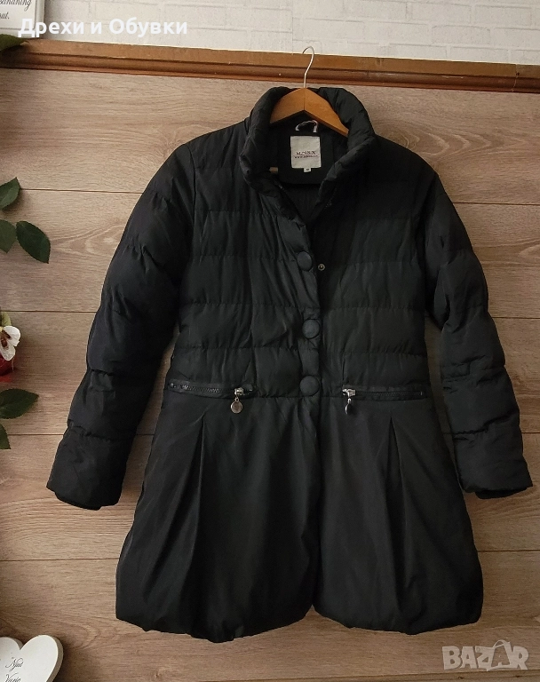 Черно зимно яке M.N.S.X. Закопчаване цип и копчета. Два предни джоба с ципове. Размер S. Гръдна 88см, дължина 70см. Цена 40лв