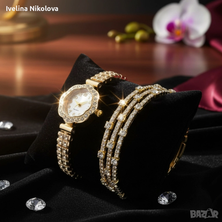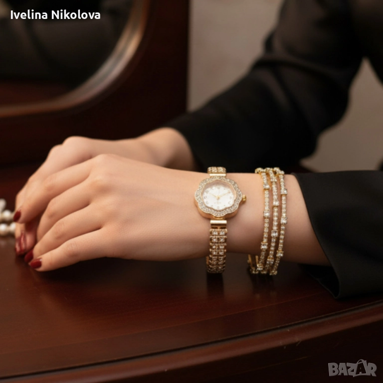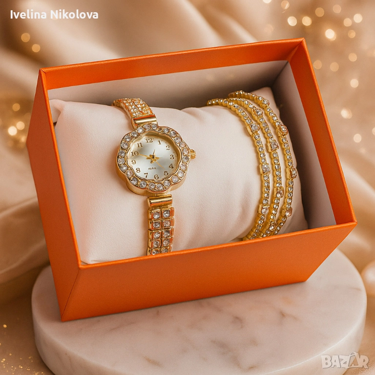 Елегантен дамски комплект – кварцов часовник с гривни в подаръчна кутия → Обява 52466874