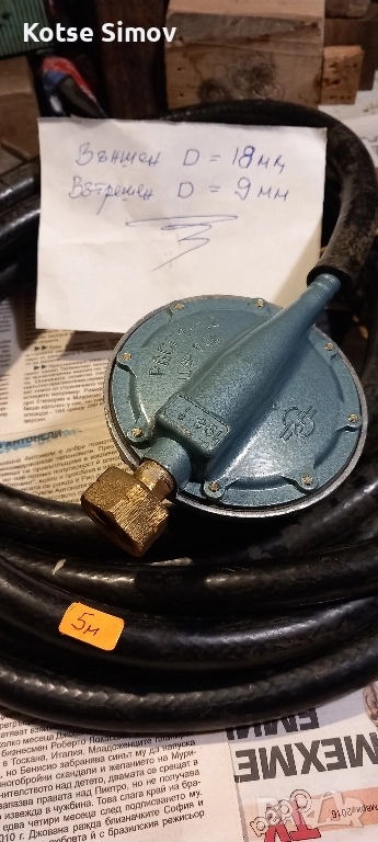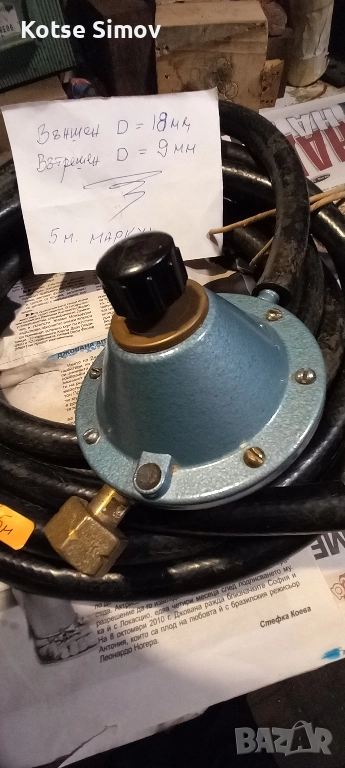 |1.|Черен маркуч 18/9мм.-9.60м/Две дължини/5м и 4.60м/ за газови бутилки,ремонт на покриви ,уреди в каравани идр. 3 лв.линеен метър. | 2.| Редуцир вентил/руски/с регулиране на налягането за газови бутилки използвани за уреди в каравани,кемпери и др. -20лв.НОВ.Синия редуцир вентил на з-д ,,Ивайло"В.Търново-ПРОДАДЕН.