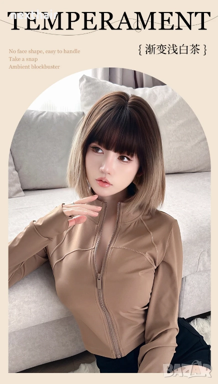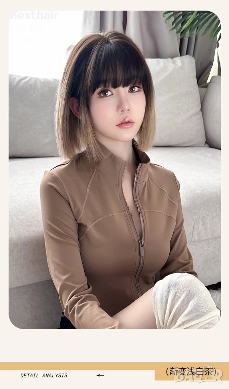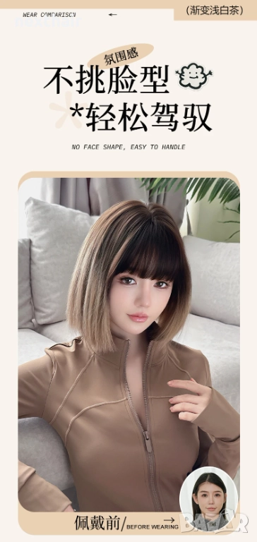Представяме ви висококачествена къса омбре перука в стилно кафяво с пепеляви краища. Моделът е с дължина 28 см, оформен със зиг-заг път и фин бретон, които придават естествен и модерен вид.