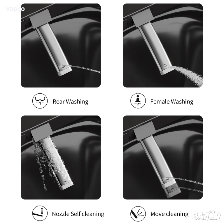 - Функция биде с прецизно нагласяне на температурата на вода, опция за дамско измиване и подсушаване