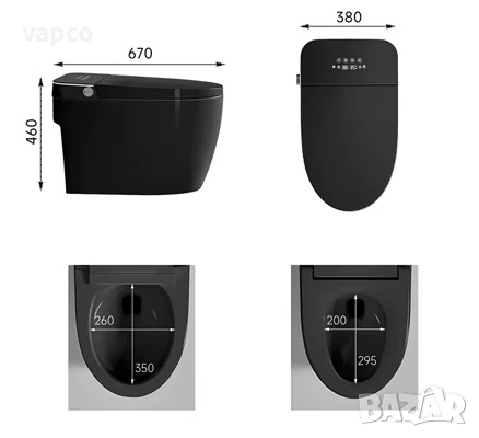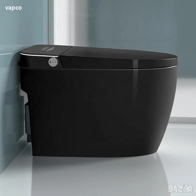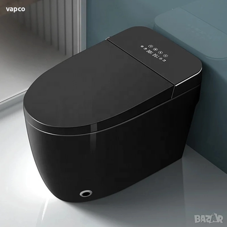 Мултифункционална черна смарт тоалетна с биде, подгрев, сушене, масаж