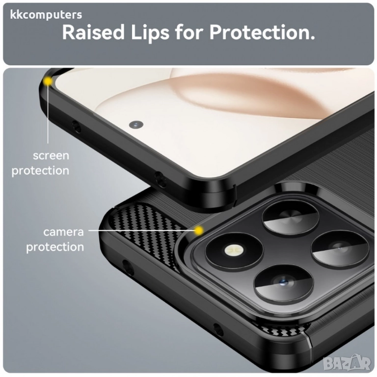 Прецизна, подходяща форма: Специално проектиран с издигнати рамки около камерата и екрана. Това гарантира, че при поставяне на равна повърхност, най-чувствителните части на телефона не докосват повърхността. Големият отвор за обектива гарантира, че нищо не засенчва или ограничава мощната камера на Honor X7d / 400 Smart .