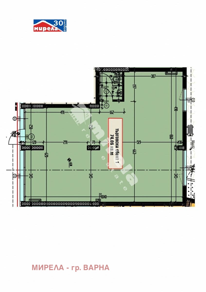 РАЗПРЕДЕЛЕНИЕ: голямо помещение с лице на улица и санитарен възел. Разполага с вход от улицата.