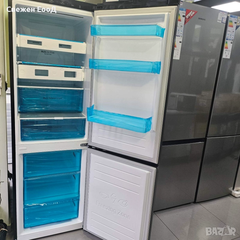 Елиминира влагата и поддържа въздуха сух, предотвратявайки образуването на лед отстрани или върху храната. Това не само Ви спестява усилия, но и енергия, тъй като фризерното отделение без замръзване е просто по-ефективно.