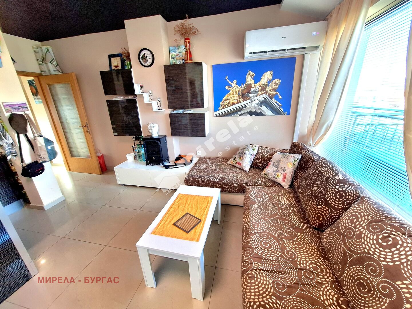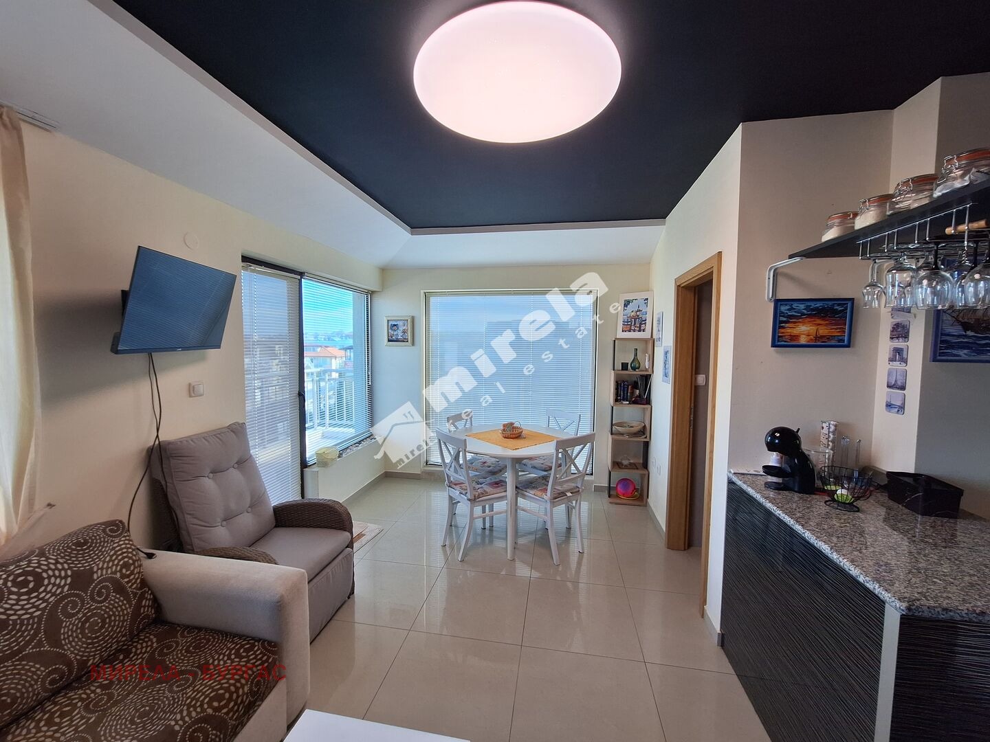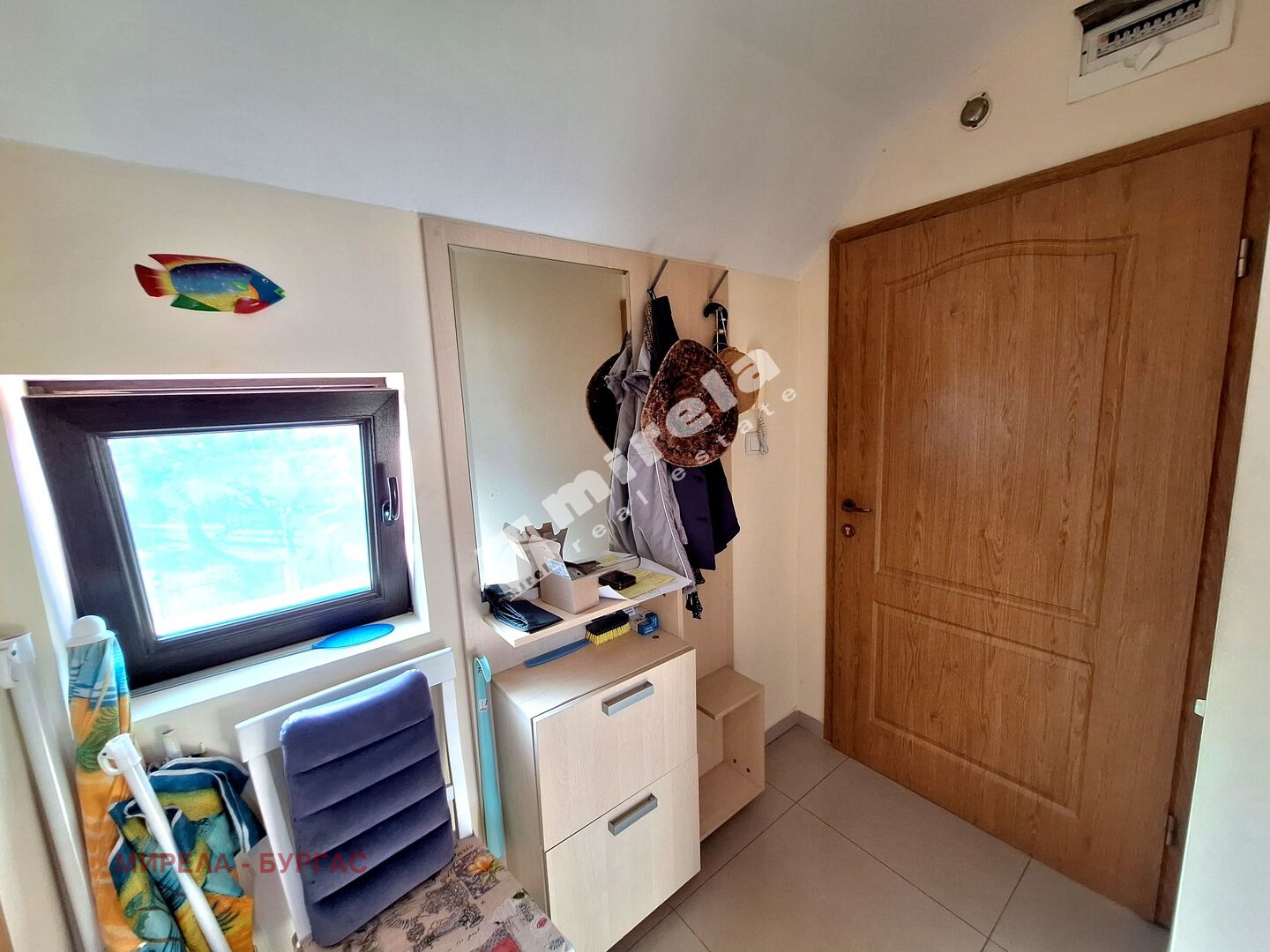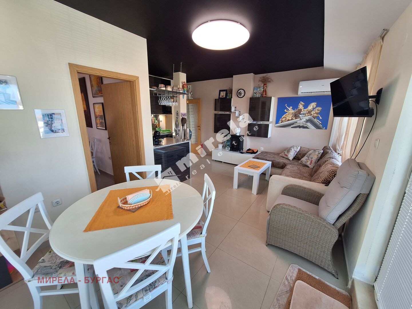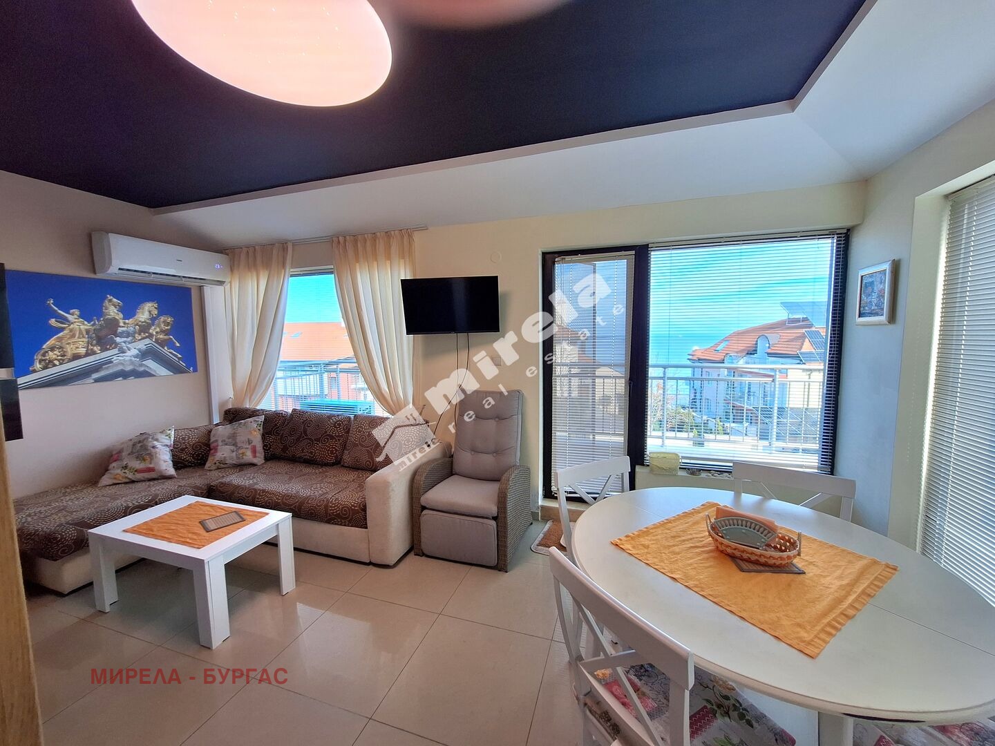 Далечна гледка към морето; Имотът има жилищен статут; Има надземно паркомясто; Сградата няма асансьор; Продава се с обзавеждане, което подлежи на уточнение; ЕТАП НА СТРОИТЕЛСТВО: разрешение за ползване (Акт 16); ОТОПЛЕНИЕ: климатик; Има 1 балкон/тераса; С довършителни дейности; Има такса поддръжка; Преходен; Целогодишно ползване; ВИД СТРОИТЕЛСТВО: тухла; ЗАСТРОЕНА ПЛОЩ 63 кв.м; ГОДИНА НА СТРОИТЕЛСТВО: 2010 г.; ИЗЛОЖЕНИЕ: юг, североизток, гледка към морето; СПАЛНИ: 1; БАНИ: 1; ДОГРАМА: Алуминиева