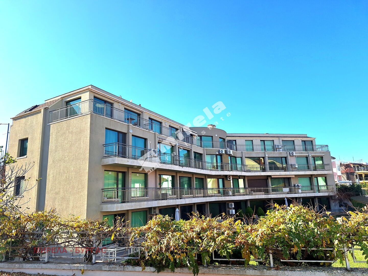 Апартаментът е разположен на трети последен жилищен етаж с площ от 71.5 кв.м., и е с разпределение коридор, всекидневна с кухненски бокс, една спалня, баня със санитарен възел и голяма Г-образна тераса с невероятна гледка към морето. Имотът е обзаведен и оборудван с всичко необходимо, както за лично ползване, така и за отдаване под наем. Самостоятелни партиди за ток и вода. КЪМ АПАРТАМЕНТА ИМА ПРИЛЕЖАЩО ПАРКОМЯСТО.