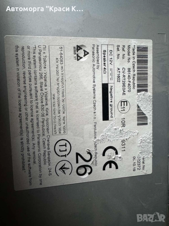 86140F4070 екран за навигация и мултимедия TOYOTA CHR в автоморга KRASI CAR,