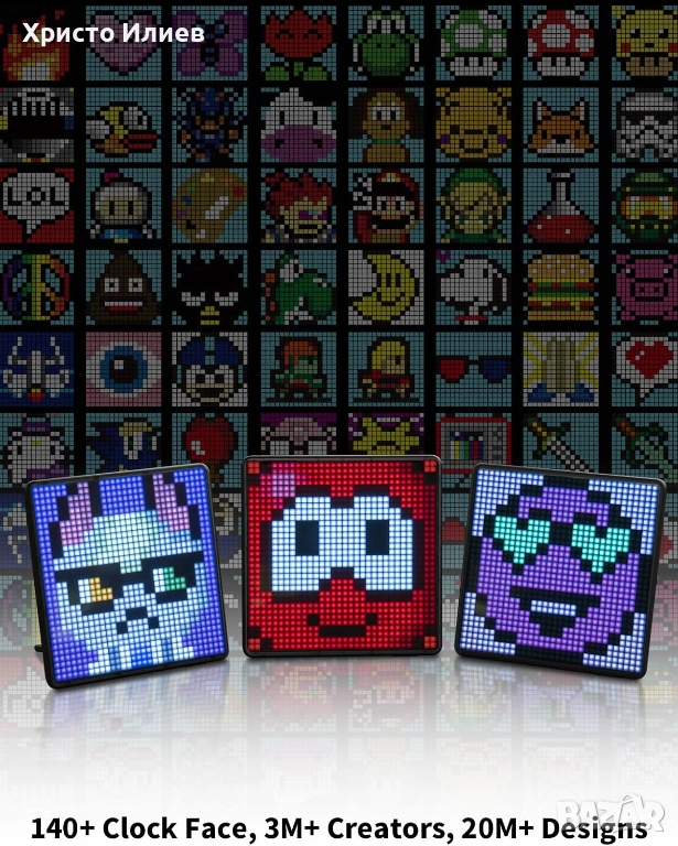 Други удобни функции: С безплатното приложение можете да използвате Pixoo-Max и като ежедневен спътник, като например часовник, календар, табло за показване, прогноза за времето и др. Поддръжка за бързи известия от Twitter, Facebook и Instagram. Готин и практичен подарък за технологични маниаци, любители на игри, деца и домакини.