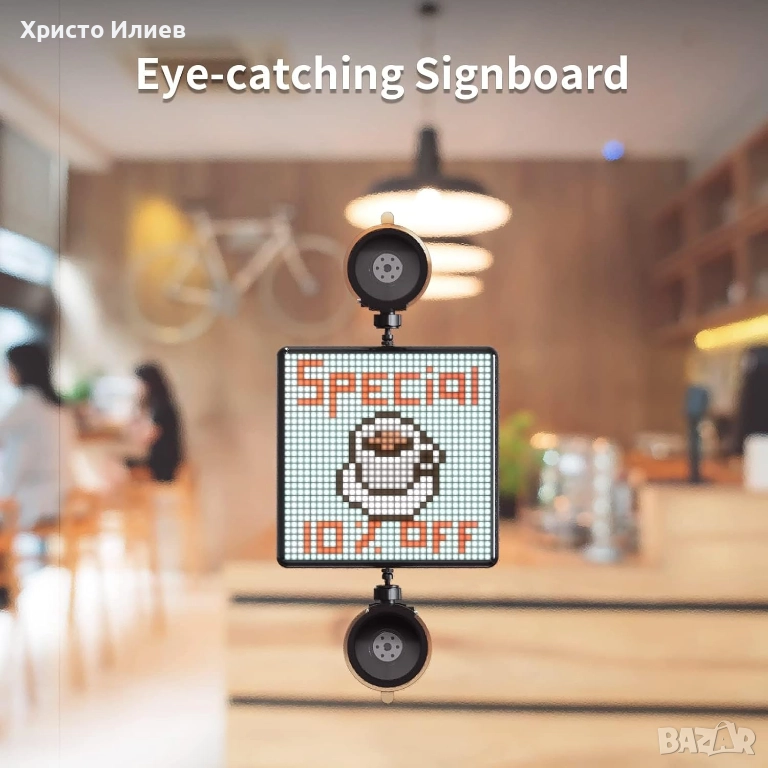 Рекламирайте бизнеса си: Покажете приветствено съобщение за клиентите си с Pixoo-Max или украсете магазина с интересен мотив. Това помага за увеличаване на трафика към магазина, като привлича визуалното внимание на клиентите.