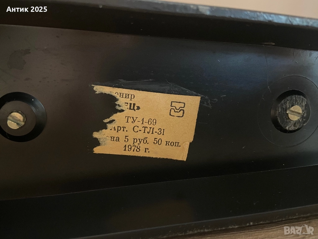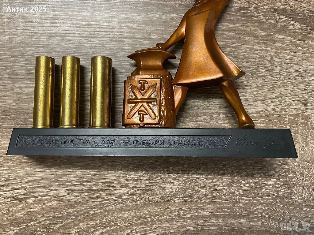 Винтидж писменен прибор „Ковач“ от СССР, изработен от масивен метал. Подходящ за поставяне на химикалки или като декоративен акцент в офис или кабинет. На основата има релефна фигура на ковач и цитат: „Значението на Тула за републиката е огромно“ — Улянов (Ленин). Рядък колекционерски артикул, подходящ за любители на съветската история и индустриалния дизайн.