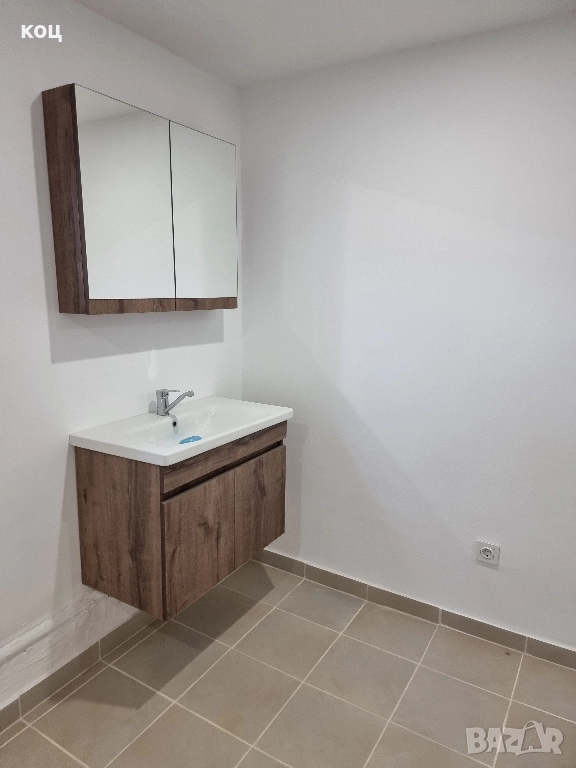Нова баня с тоалетна, мивка и голяма душ кабина. ВиК и контакти за пералня и сушилня са готови. Нова дограма. Теракота на пода и душ кабина с плочки.
