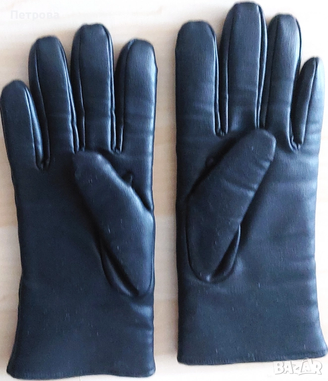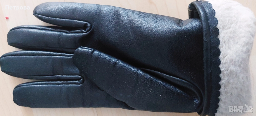 Дамски кожени ръкавици, черни, 100 % естествена кожа, нови, с топла вълнена подплата, с красиви декоративни тегели и капси, ширина 10 cm, дължина 25 cm, дължина на пръстите 8-9 см. Цена 20 лв. Изпращат се с 10% отстъпка от общоприетата куриерска такса.