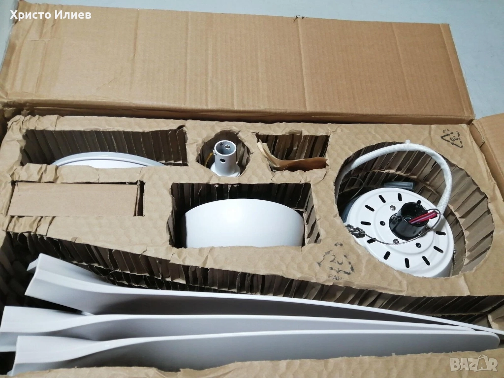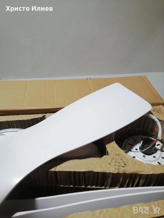 Дистанционното управление осигурява лесен контрол на всички функции на вентилатора за таван и осветителното тяло. Включвайте или изключвайте осветителното тяло или вентилатора, избирайте от три скорости на вентилатора, преминавайте през настройките на осветлението SceneSwitch или таймерите.