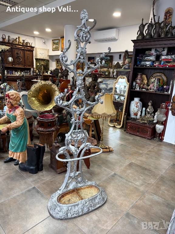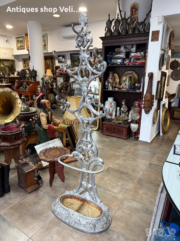 Уникална френска викторианска закачалка за дрехи и чадъри изработена от чугун. Предлагаме доставка с Еконт и лично предаване за градовете Велико Търново, Русе и Сливен!