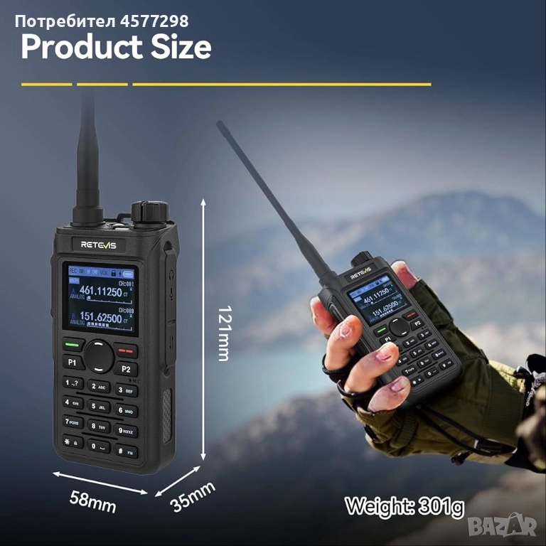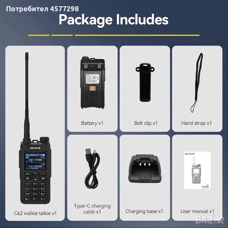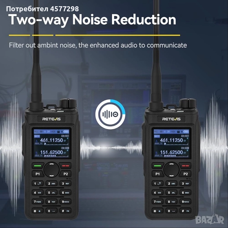 Retevis c62 -Уоки-Токи с двойна лента професионално с LSD екран