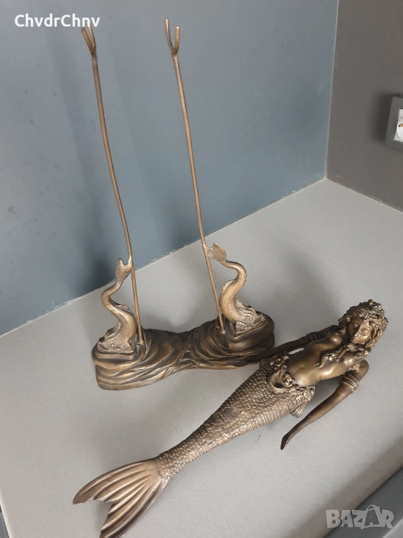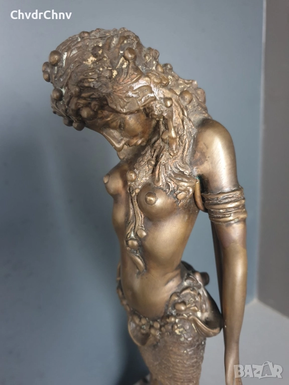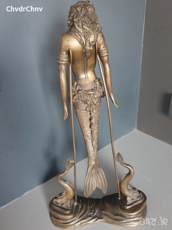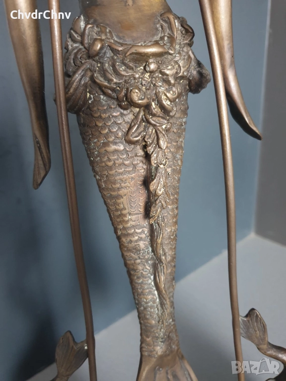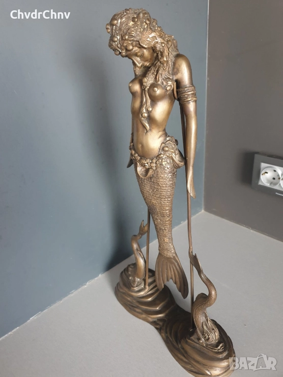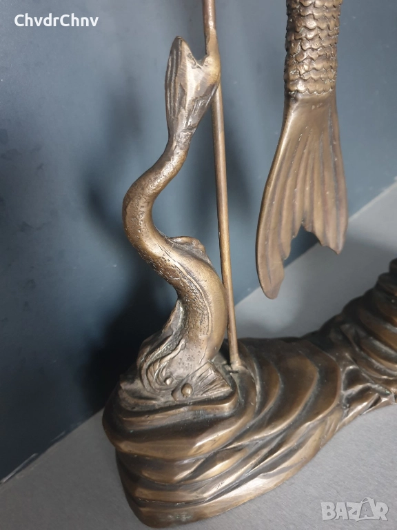 46см-5кг статуетка/бронзова скулптура/стара фигура на русалка/риба кай