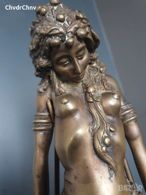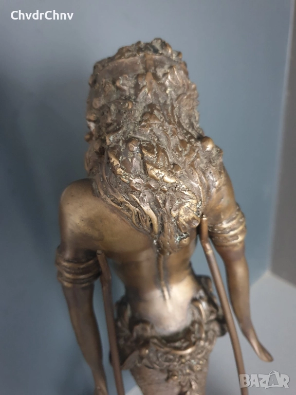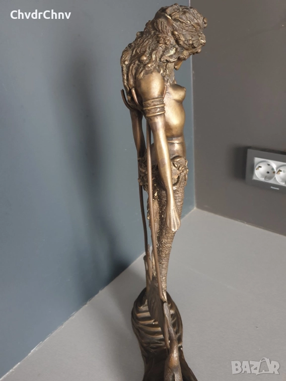 Височина 46 см, тегло около 5 кг, стар плътен бронз с патина, детайлна.