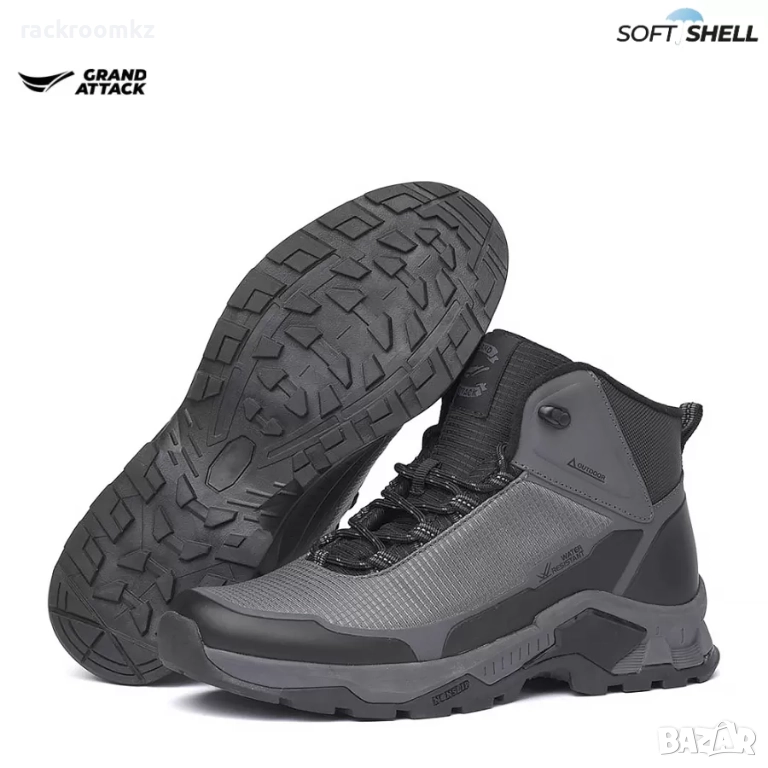 Мъжки туристически обувки Grand Attack 31053-2 grey, изработени от Soft Shell материал с водоустойчиво покритие, осигуряващо комфорт и защита при дъжд, сняг и влага.