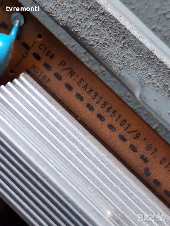 POWER SUPPLY EAX31845101/9 REV1.0 EAY3302510 за 26-инчов телевизор LG Модел 26LC51 , с дисплей V260B1-L03 Платката е използвана, но гарантирано работеща, демонтирана от телевизор със счупен дисплей. Тествана е от нашия техник.