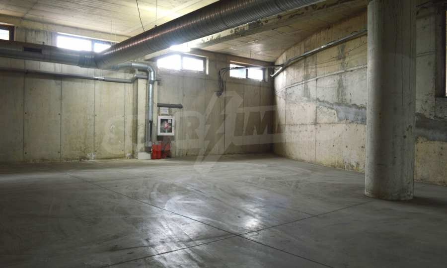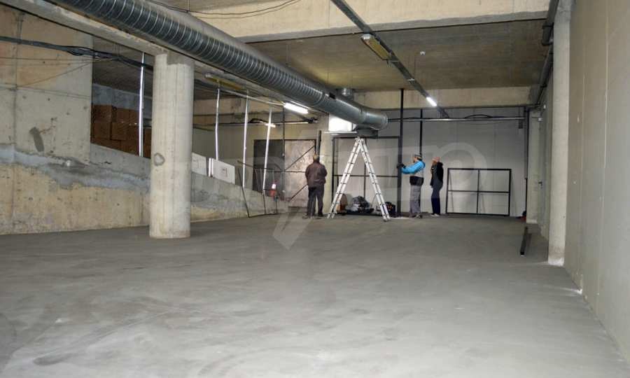 Под шлайфан бетон, стени бетон и гипсокартон, метална врата 2,5м Х 2,5м, отделен електромер.