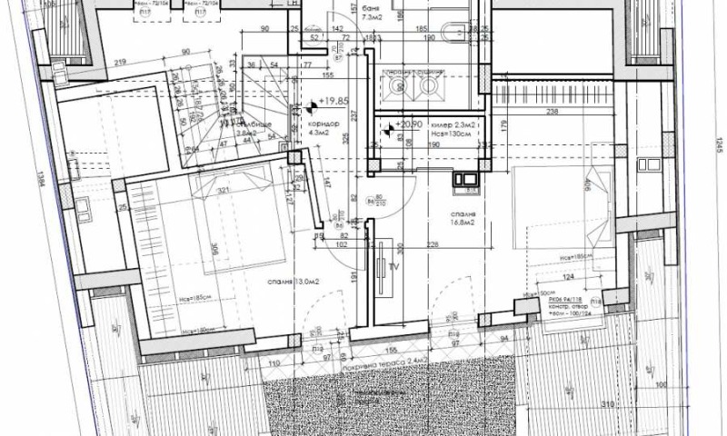 2 ниво: баня с тоалет, две спални и тераса;