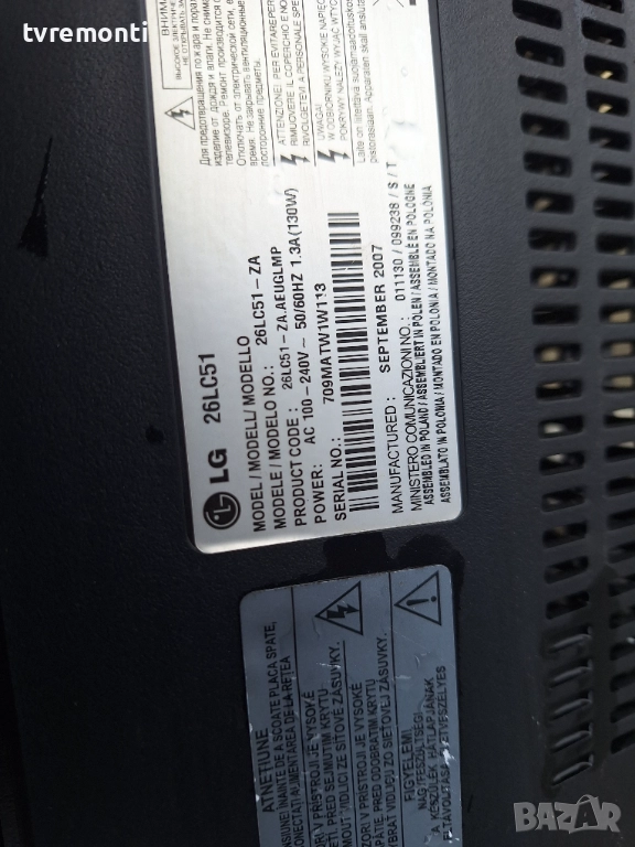 Платка EAX32572504(4) за 26-инчов телевизор LG Модел 26LC51 , с дисплей V260B1-L03 Платката е използвана, но гарантирано работеща, демонтирана от телевизор със счупен дисплей. Тествана е от нашия техник.