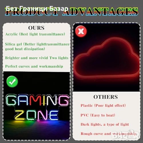 Нова Led 32 см Gaming Zone неонова лампа USB декор за геймъри стая дом