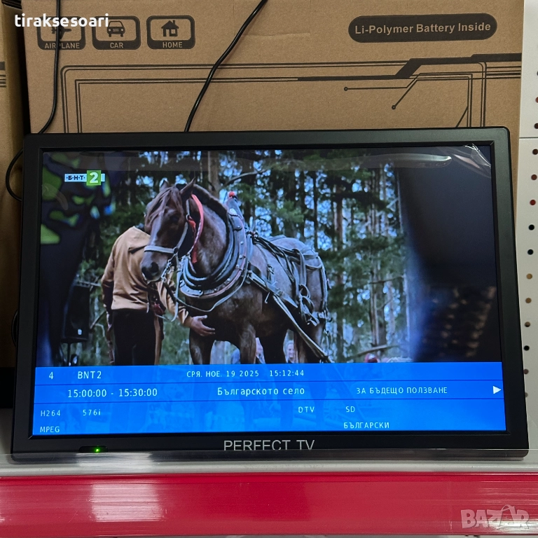 преносим телевизор 14 инча, perfect tv 14, портативен dvb-t2 телевизор, 12v телевизор за камион, каравана тв 14", mini hd tv, телевизор за път и къмпинг