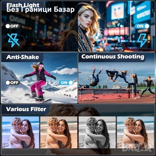 Нова компактна Влог камера 4K 48MP с въртящ екран и зарядна станция