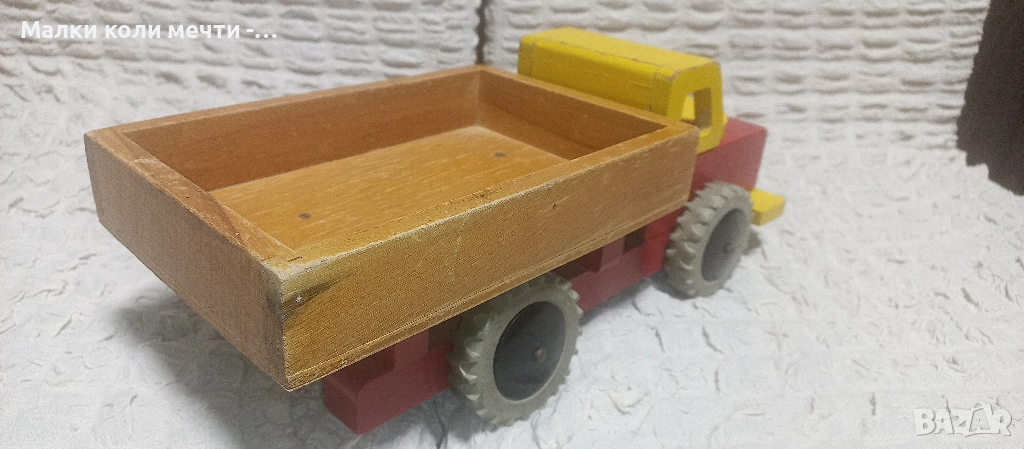 1..- Стар дървен камион, 33 см дължина, леко захабен от времето. Колелата се въртят. Цена 50 лв.
