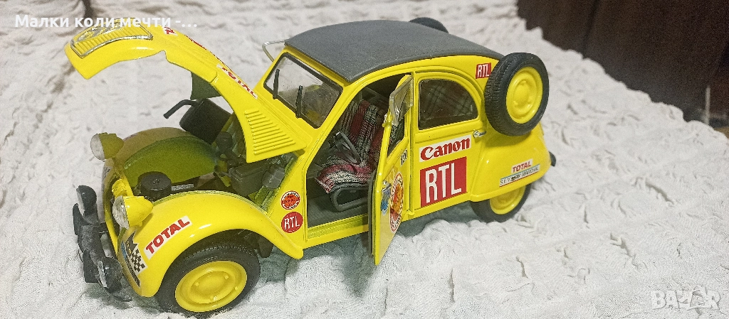 2..- Citroen 2 cv - 1952 г. Мащаб 1:18 ( 21 см. дължина ). Колата е с оригинални постелки на седалките. Забележка - предното ляво колело стои малко на криво. Производител Maisto. Цена 75 лв -