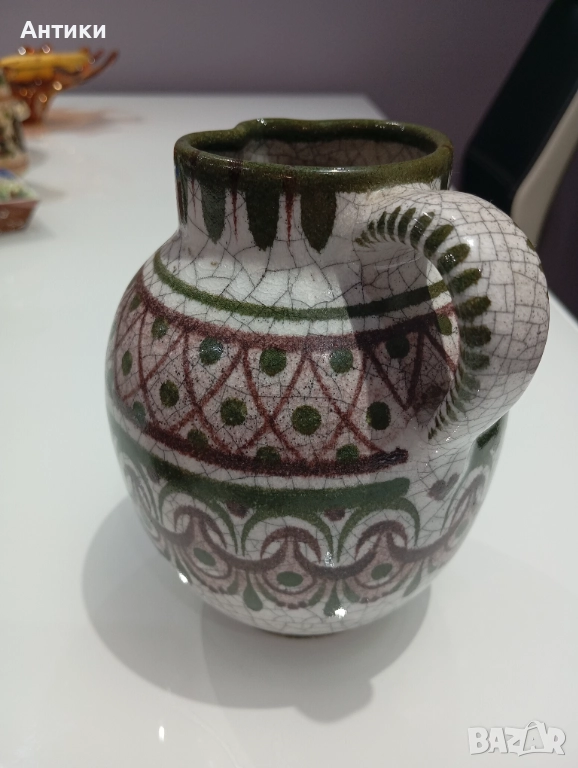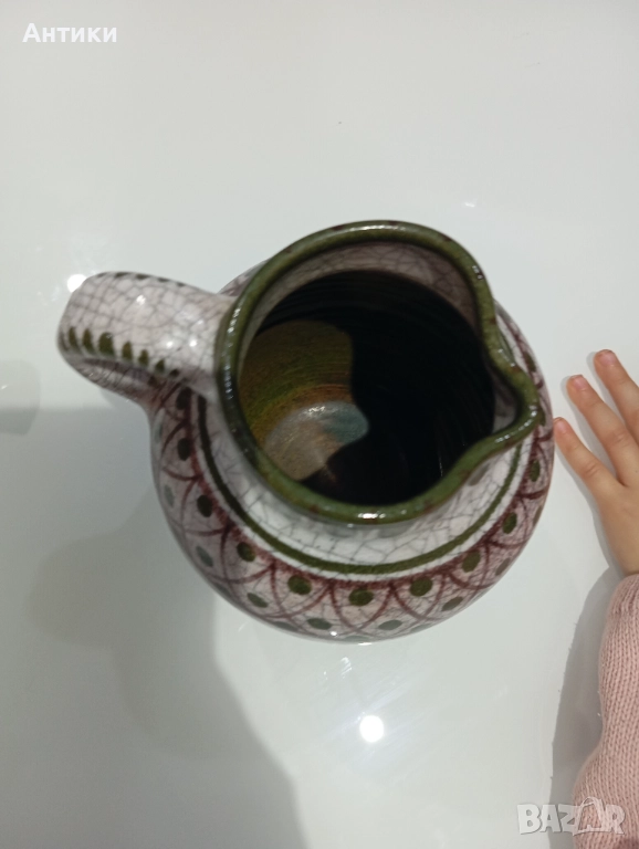 Красива стара керамична кана ръчно изработена ,с маркировка.