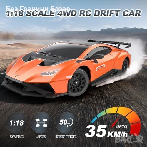 Нова играчка RC Дрифт автомобил 35 km/h 4WD LED светлини 1:18 High Speed