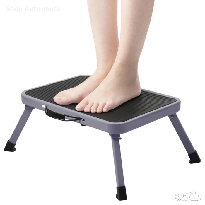 Изработена е от здрава стомана и разполага с цяла стъпална повърхност, покрита с неплъзгащ материал, което гарантира отлично сцепление дори при влажни условия. Краката са стабилни, сгъваеми и снабдени с гумирани накрайници за предотвратяване на хлъзгане. В сгънато състояние степенката заема минимално пространство и се пренася лесно.