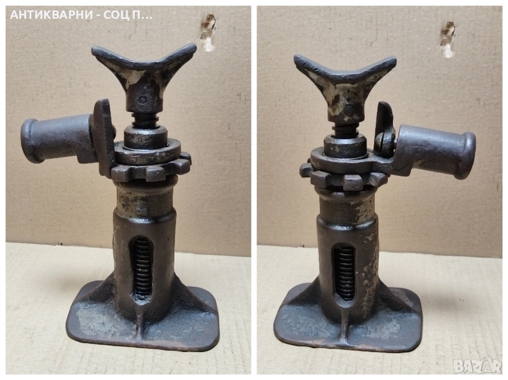 - Крика е в перфектно състояние за годините си, напълно здрав и работещ отлично, без абсолютно никакви забележки, напълно годен за употреба, крика е от старите, нищо общо с днешните на пазара, всичко е снимано подробно, размерите са на снимките!