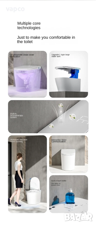 Тази тоалетна чиния е иновация в санитарията, интегрираща съвременни технологии за оптимизиране на човешкото взаимодействие и хигиенната ефективност. Оборудвана с автоматизирани системи за почистване и дезинфекция, тя използва сензори за активиране и конфигуриране на функции, като свежда до минимум необходимостта от физически контакт и по този начин намалява вероятността от микробиологично замърсяване. Цифровите механизми за управление позволяват регулиране на работните параметри, включително температурата на водата, въздушния поток, осигурявайки адаптивност към индивидуалните нужди на потребителите. Санитарните керамични композитни материали осигуряват структурна здравина срещу механични и химични влияния, както и съвместимост с почистващите продукти, използвани за поддържане на хигиенните стандарти. Ергономичният дизайн, заедно с автоматичните функции, помага за оптимизиране на потреблението на ресурси, включително вода, като същевременно подкрепя принципите на устойчивост при управлението на домашните ресурси.
