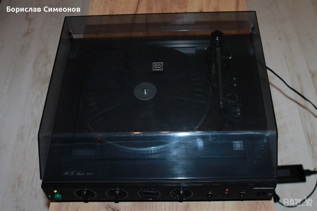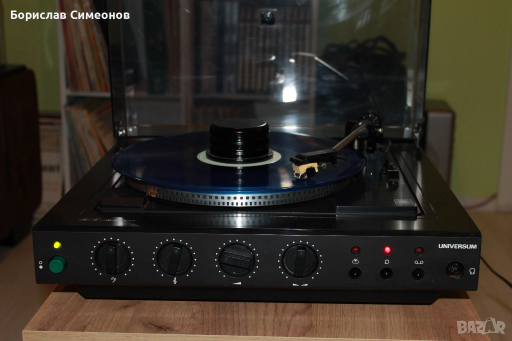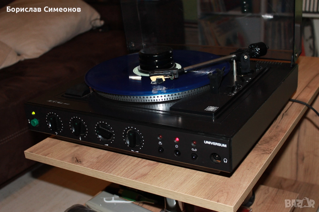 Грамофон със усилвател Universum Studio 3000 FV-5581B.Работи правилно.Едната панта на капака е счупена.Моля вижте снимките.