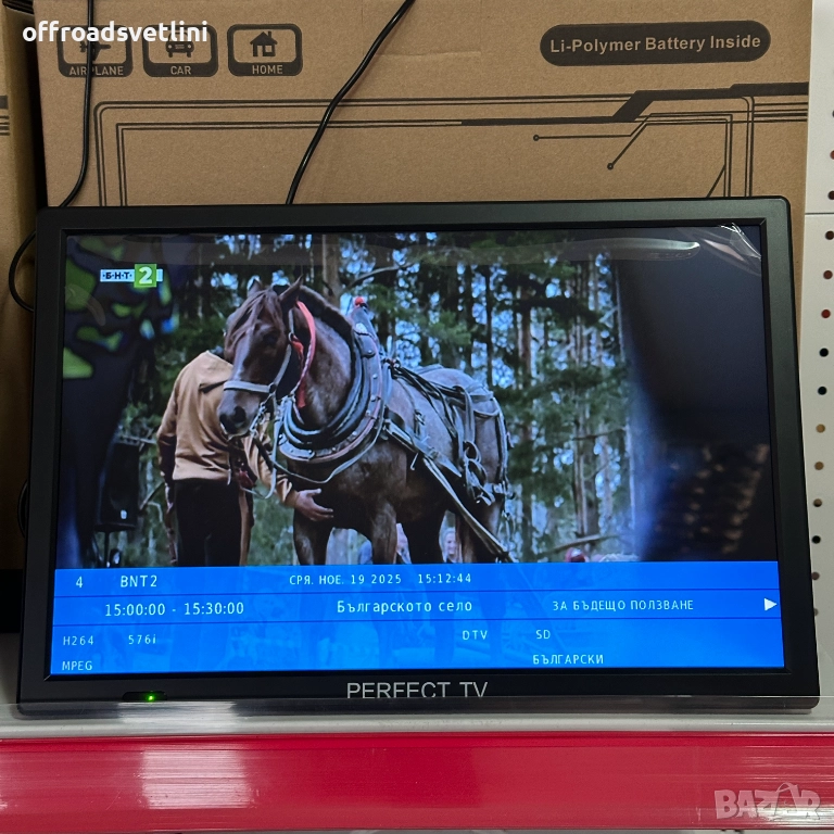 Портативният телевизор PERFECT TV 12" е създаден за хора, които искат цифрова телевизия навсякъде – в автомобил, камион, каравана, лодка, автобус, на къмпинг или по време на пътуване.