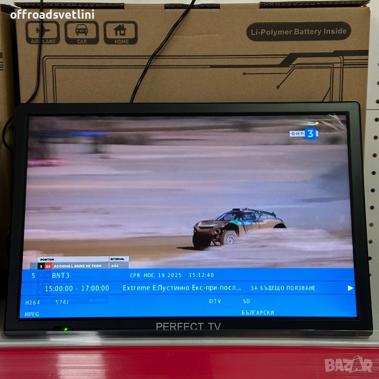 Портативният телевизор PERFECT TV 16" предлага голям и удобен екран с висока резолюция, подходящ за гледане у дома, в кола, камион, каравана, кемпер, лодка или на къмпинг.