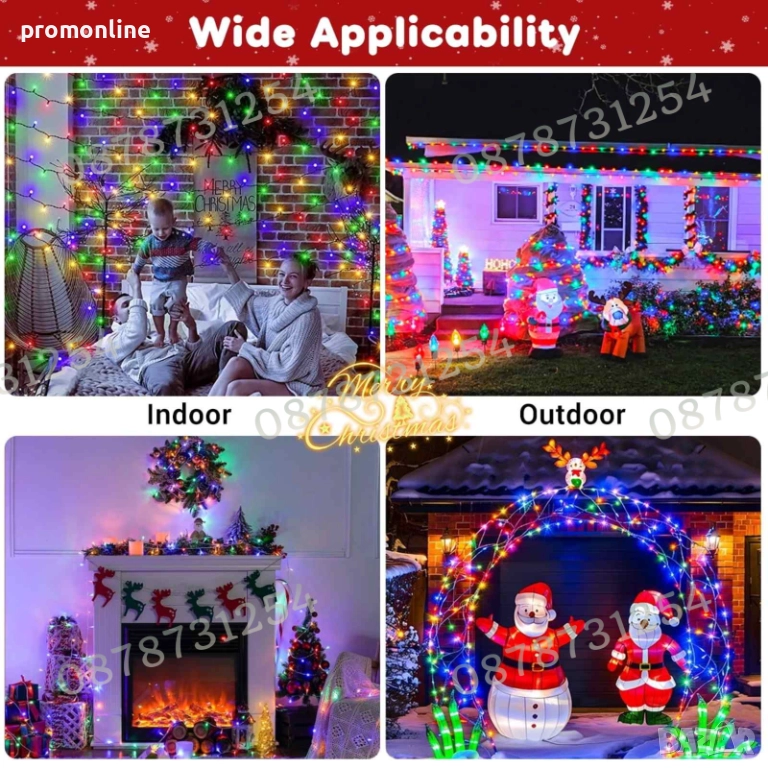 Коледните Led светлини използват ултра-високоинтензивни светодиоди, за да създадат меко и ярко осветление, създавайки перфектната празнична атмосфера за Коледа, рождени дни, семейни вечери, партита, сватби, както на закрито, така и на открито. Гледайте как задният ви двор, градина или веранда се превръща в причудлива страна на чудесата по време на коледния сезон!