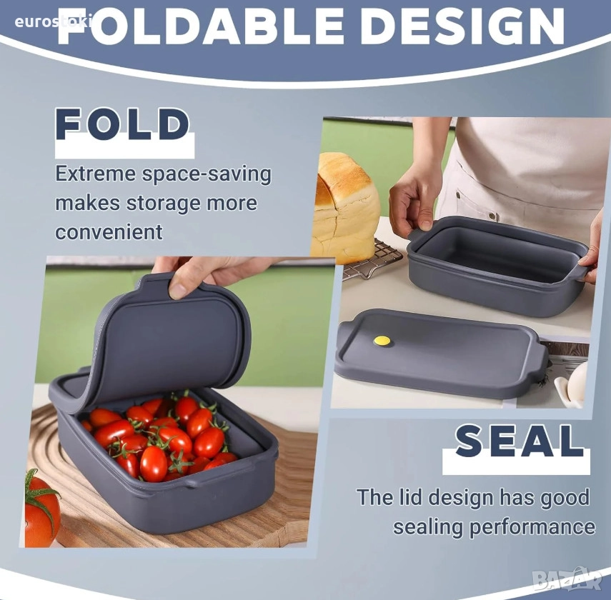 Силиконова форма за печене AUTOWNLUX, сгъваема силиконова форма с капак, форма за хляб, торти, сладк