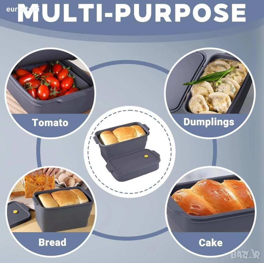 Може да се използва за печене, замразяване, а също и просто за съхранение на храна. Можете да използвате силиконовата форма за хляб, за да създадете всичко, което харесвате, като например хляб, лазаня, дебели кексове или браунита, сандвичи и др.