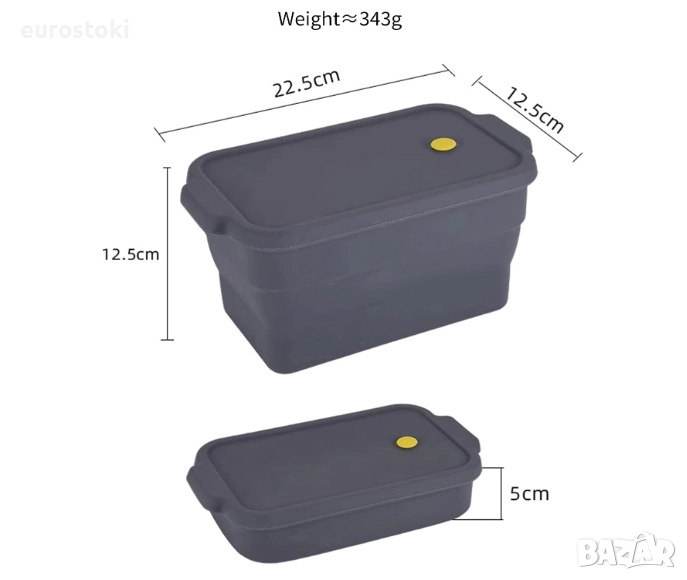 Силиконовата тава за печене с капак е със сгъваем дизайн. Преди сгъване: 22,5 см x 12,5 см x 12,5 см. След сгъване: 22,5 см x 12,5 см x 5 см.