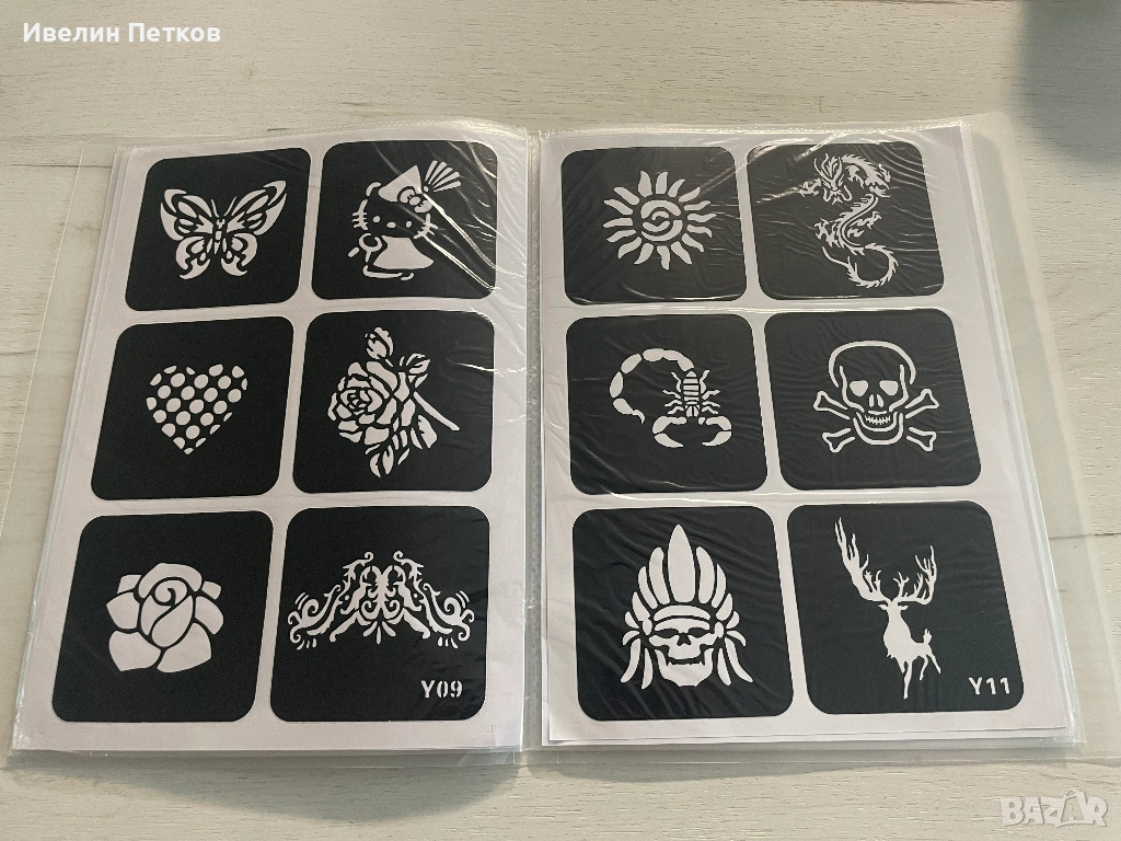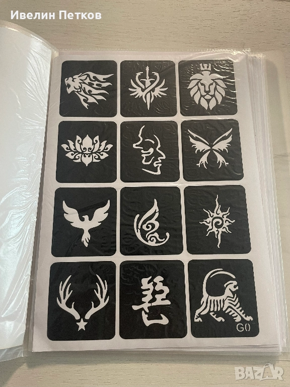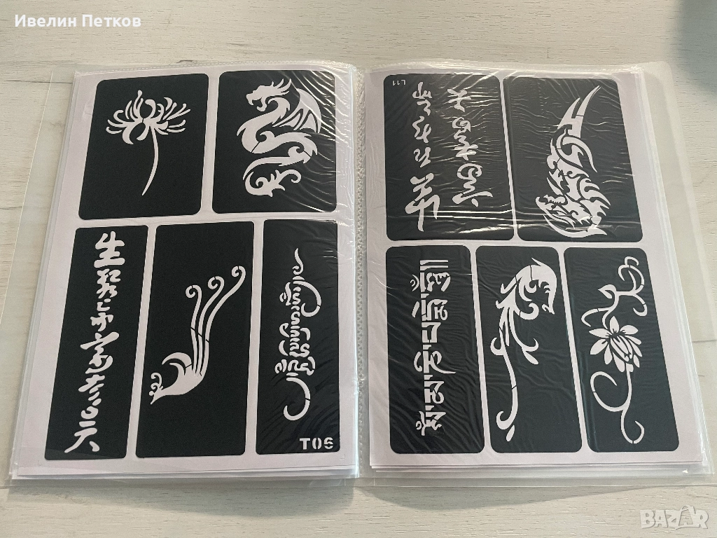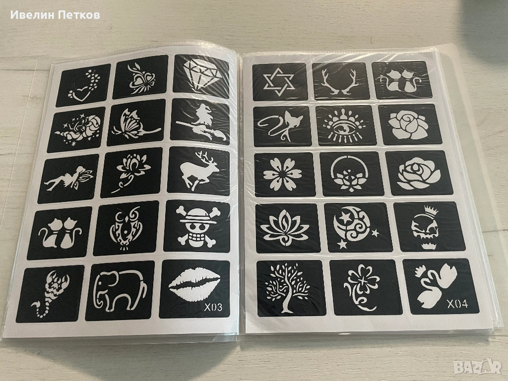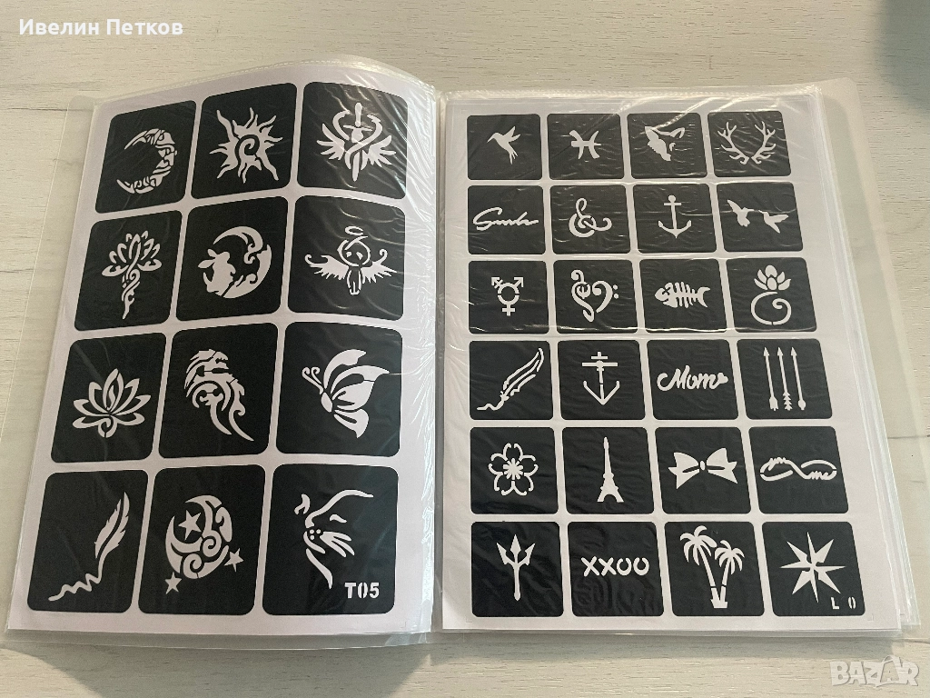 Продавам каталог със 176 шаблона за къна / татуировки. Шаблоните са тип стикери.