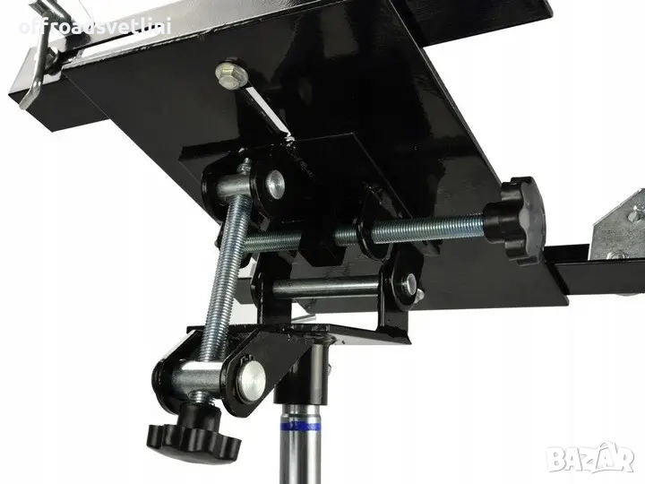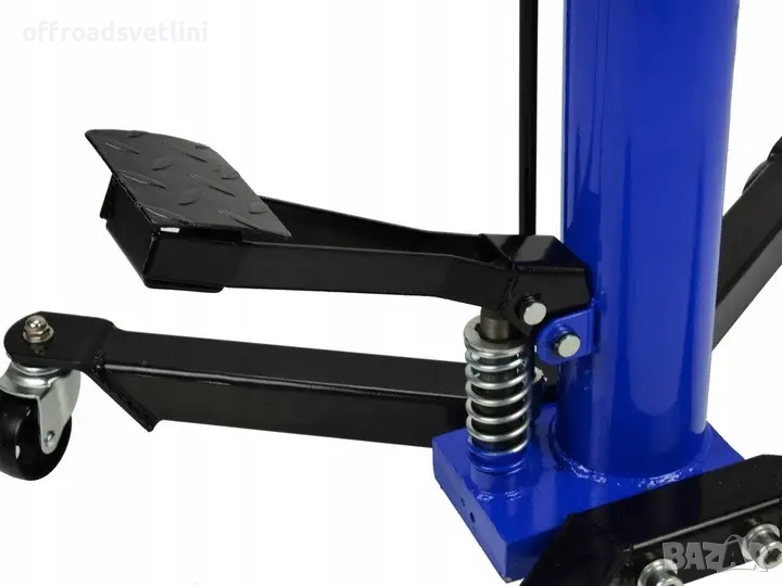 Крикът разполага с височина на повдигане от 880 мм до 1800 мм, което го прави изключително подходящ за работа под подемници. Задвижването с крак позволява ръцете да останат свободни за позициониране и фиксиране на скоростната кутия.