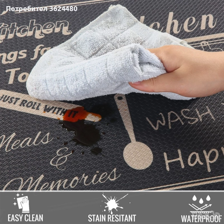 Антиплъзгаща Основа: Антиплъзгащата основа за кухня гарантира, че килимчетата са безопасни и не се разместват, дори при интензивна употреба.