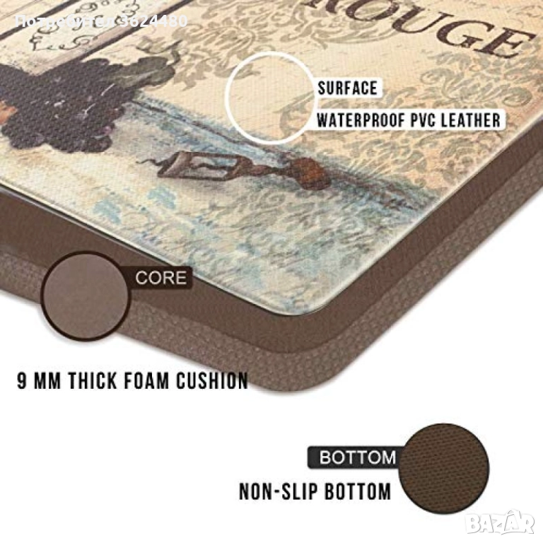 Комфорт с Мемори Пяна: Подложката от мемори пяна с дебелина от около 1 см осигурява идеален баланс между мекота и стабилност, намалявайки умората в краката при дълго стоене пред кухненския плот.