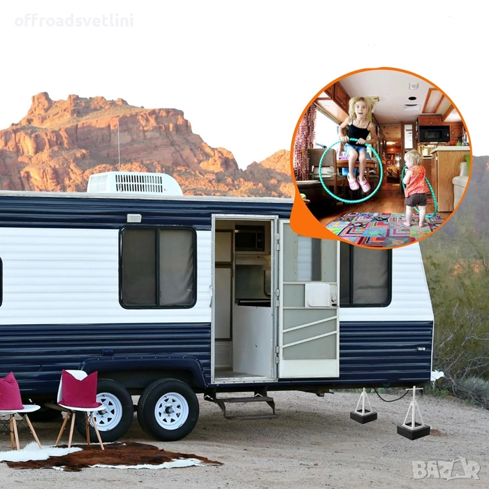 Регулируемите стабилизиращи подпори за каравана кемпер са предназначени за осигуряване на максимална стабилност и безопасност при престой. Комплектът включва 4 броя регулируеми подпори, подходящи за каравани, кемпери, ремаркета, мобилни къщи и различни платформи.